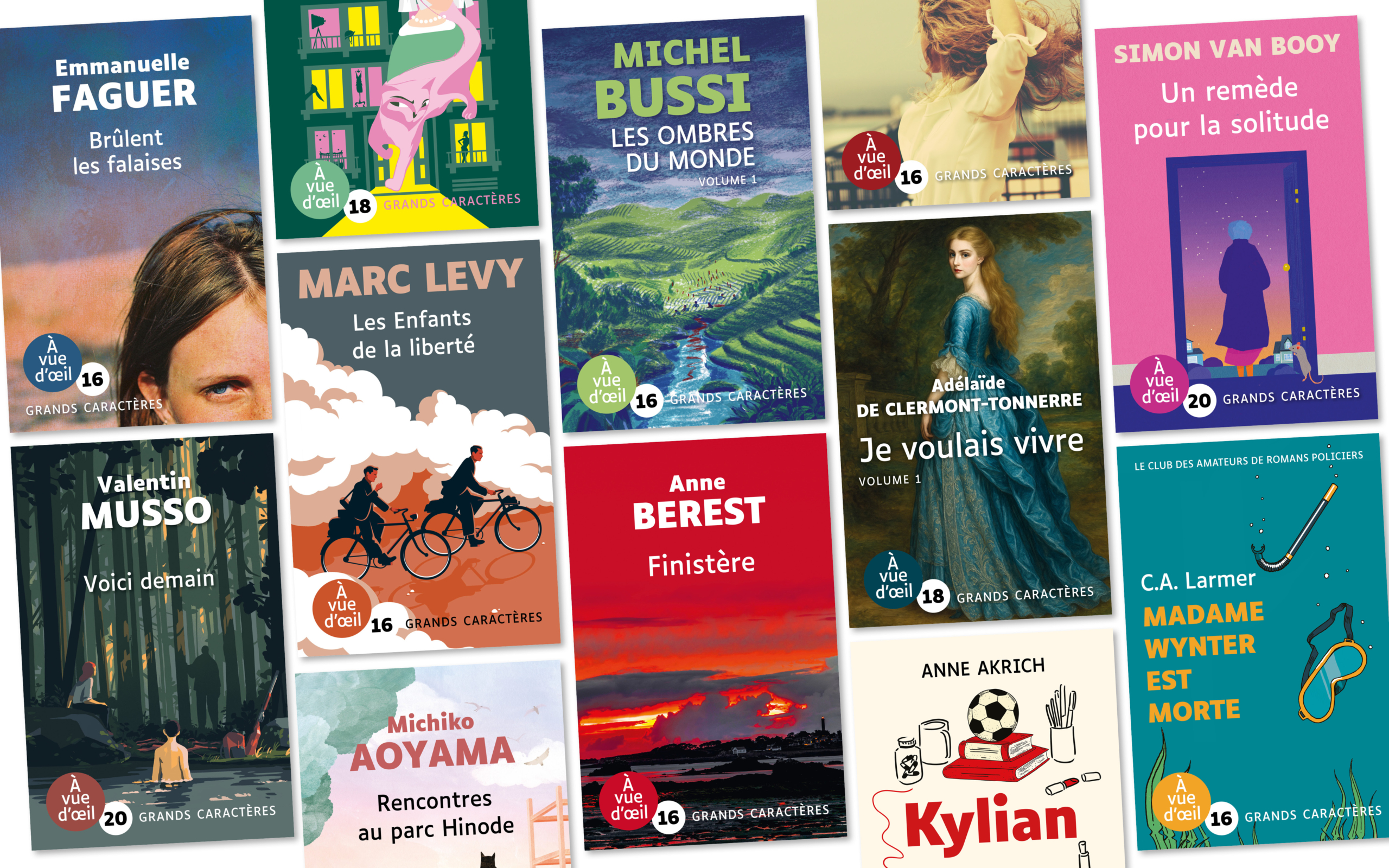 Vous trouverez des ouvrages principalement destinés aux adultes, avec une large sélection d’auteurs plébiscités par les lecteurs ou par la presse, des romans récompensés par des prix littéraires, des romans de terroir, des récits, des romances et des comédies, ainsi que des romans noirs, des thrillers et des policiers.